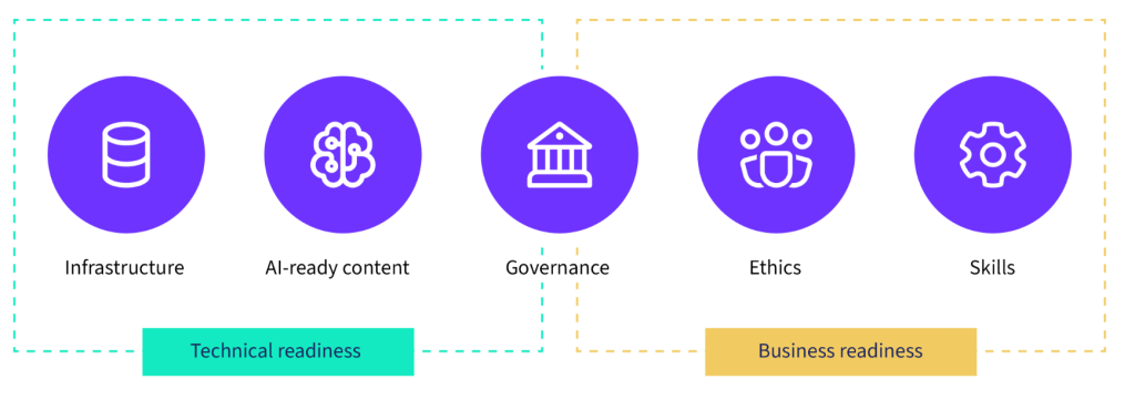 La preparación para la IA no se trata solo de tecnología. Implica contar con los fundamentos correctos de contenido, datos, procesos y gobernanza que permitan a la IA operar de forma segura, responsable y alineada a los objetivos del negocio.
